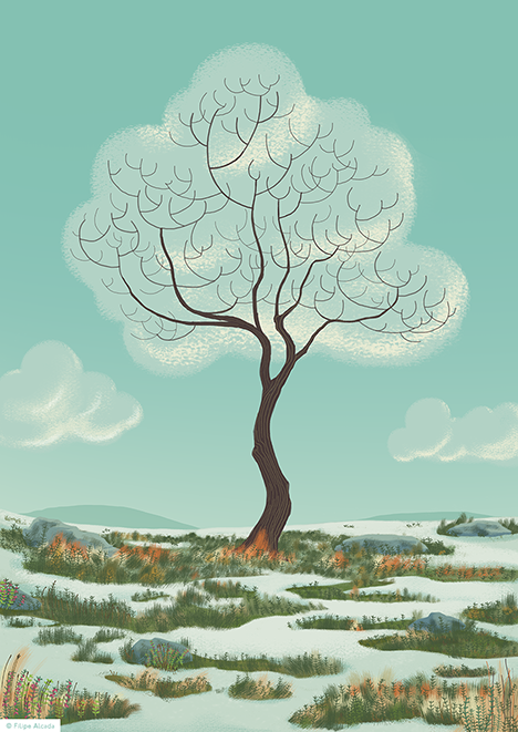 I saw this image when I was walking down a street in London, a cloud behind a bare tree that seemed to draw an outline of the missing foliage. I found it so whimsical that I immediately made a note of it in my sketchbook.